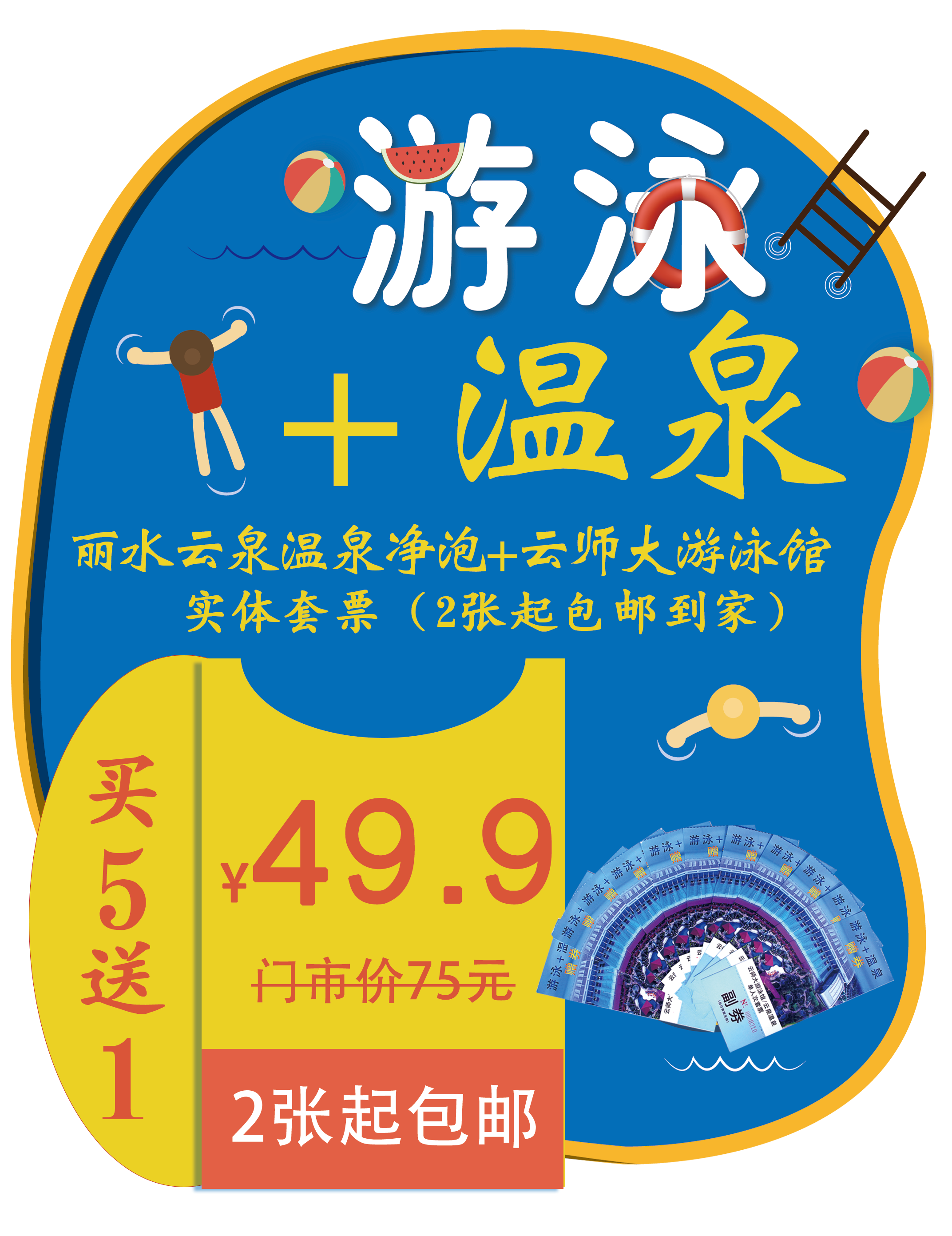 慈善义卖·2张包邮/买5送1丨仅49.9元抢购原价75元【云师大游泳馆+丽水云泉温泉净泡】实体套票,成人儿童通用一人一票,凭实体票由师大游泳馆进出,支持自提和线下购买